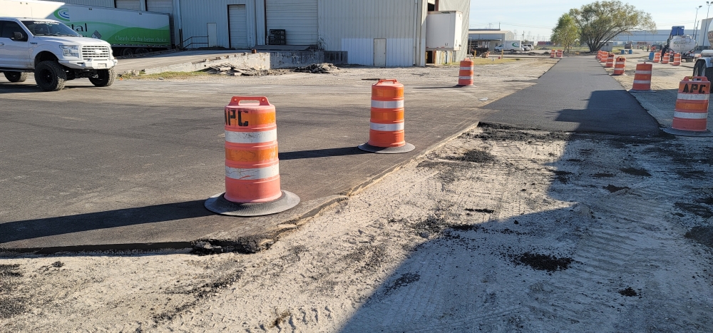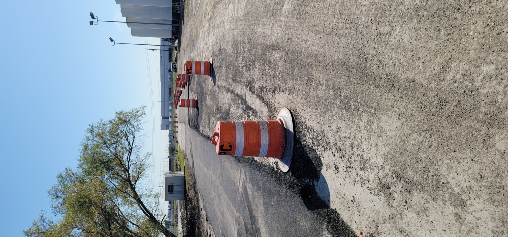 • For the asphalt overlay, American Paving first placed barricades to block traffic from the project area.
