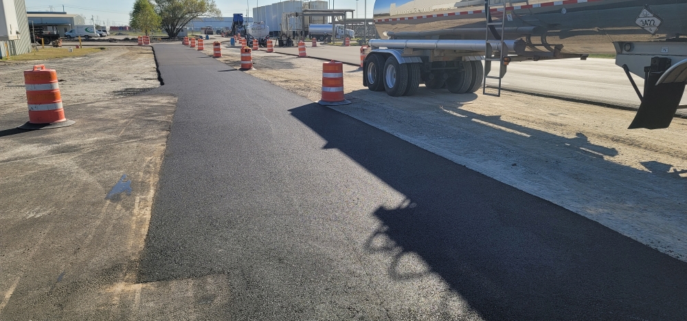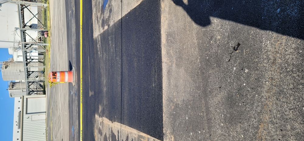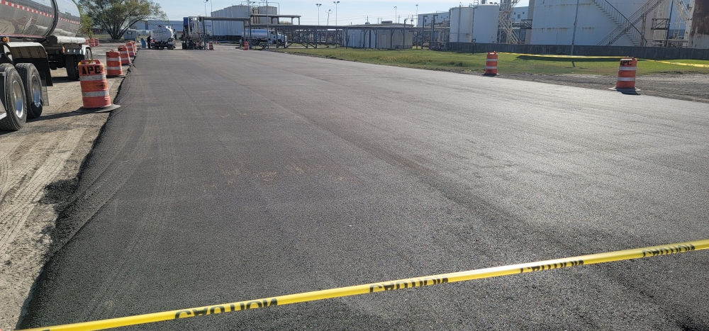 • Once the asphalt was placed, the pavement was sealcoated using a polymer-modified master sealer. More than 1,200 gallons of sealcoat were used to protect the new pavement from wear and damage.