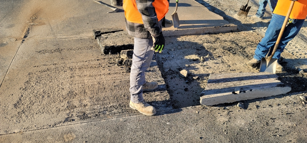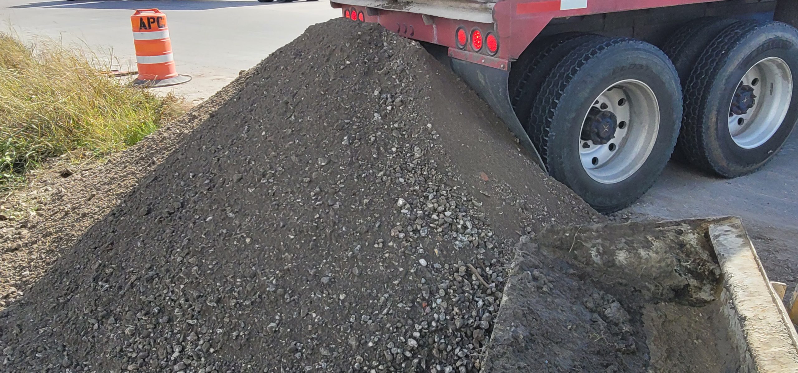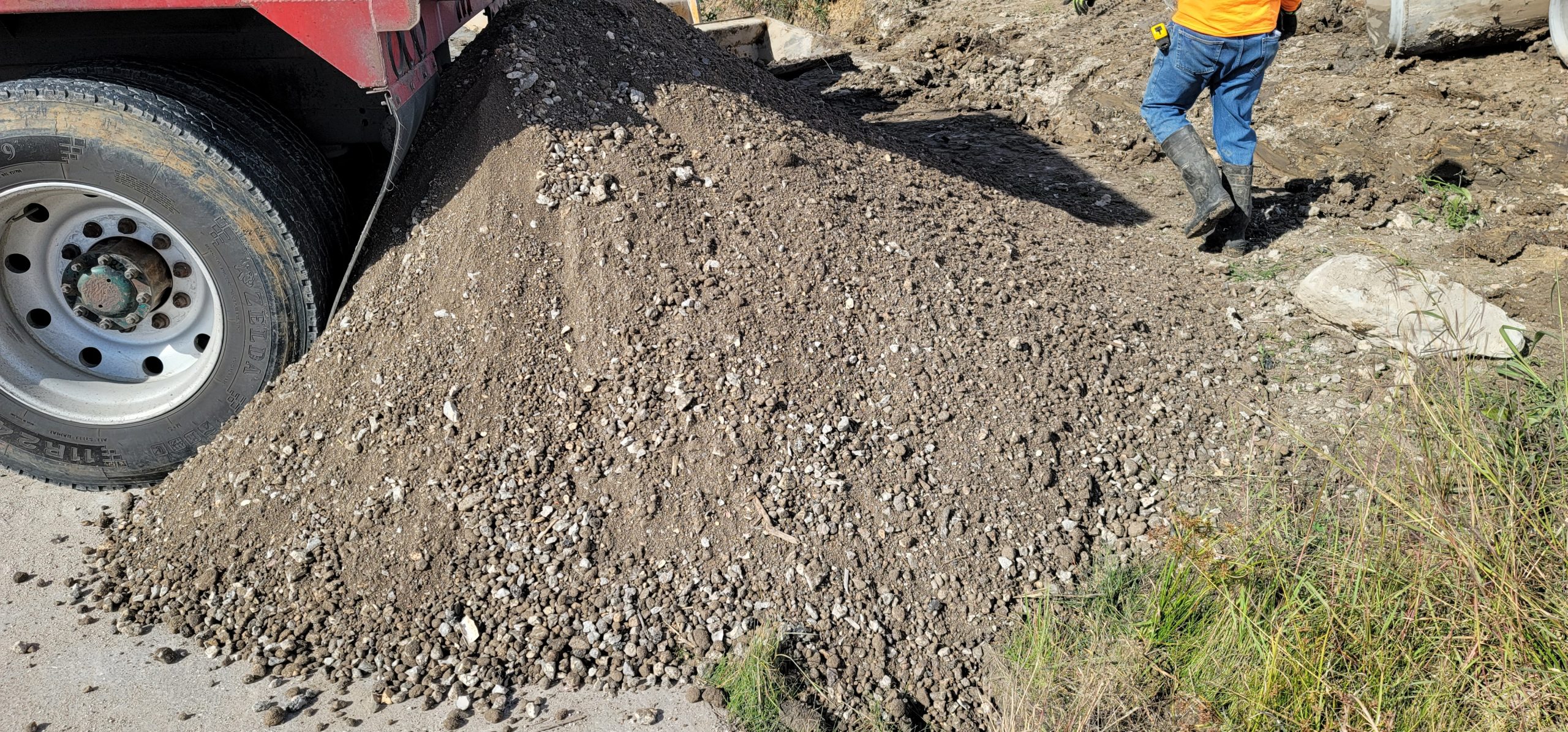 • Stabilize the existing base to a depth of 10 inches. The surplus rock was used in the cement mix to establish a homogenous base.