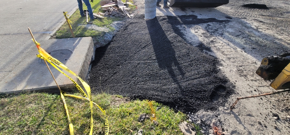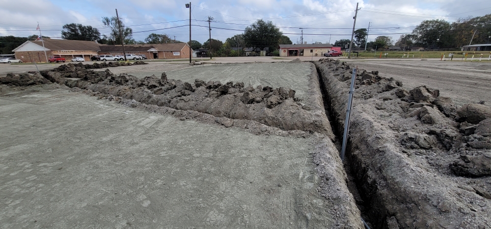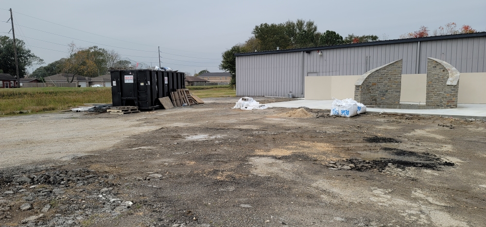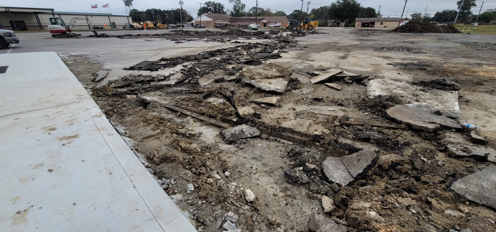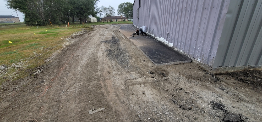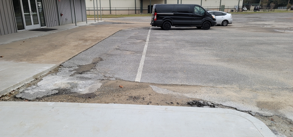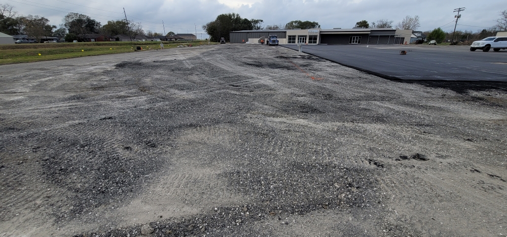 - In the main lot, pulverizing the existing asphalt and base down to a depth of 6”.