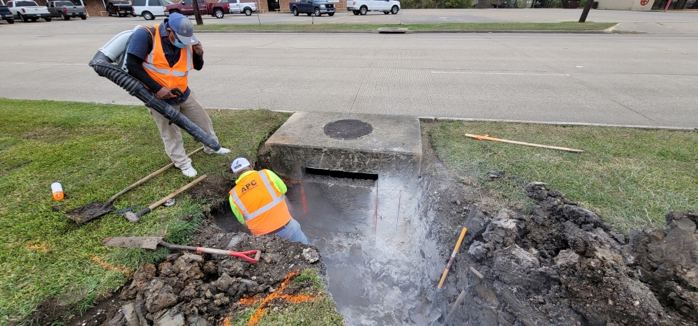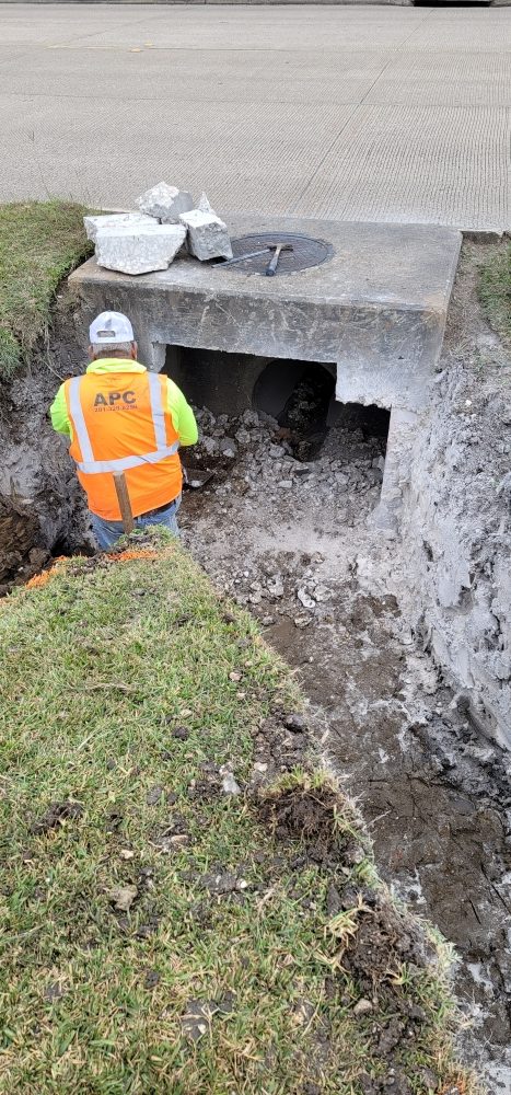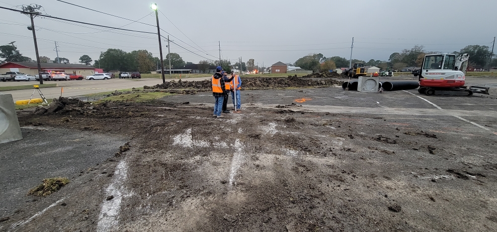 - Shooting the elevations for the main lot and storm sewer. Pathway’s main lot had drainage issues and required a new storm sewer to alleviate them. Shooting the elevations allows the American Paving team to determine drainage grades and paths.